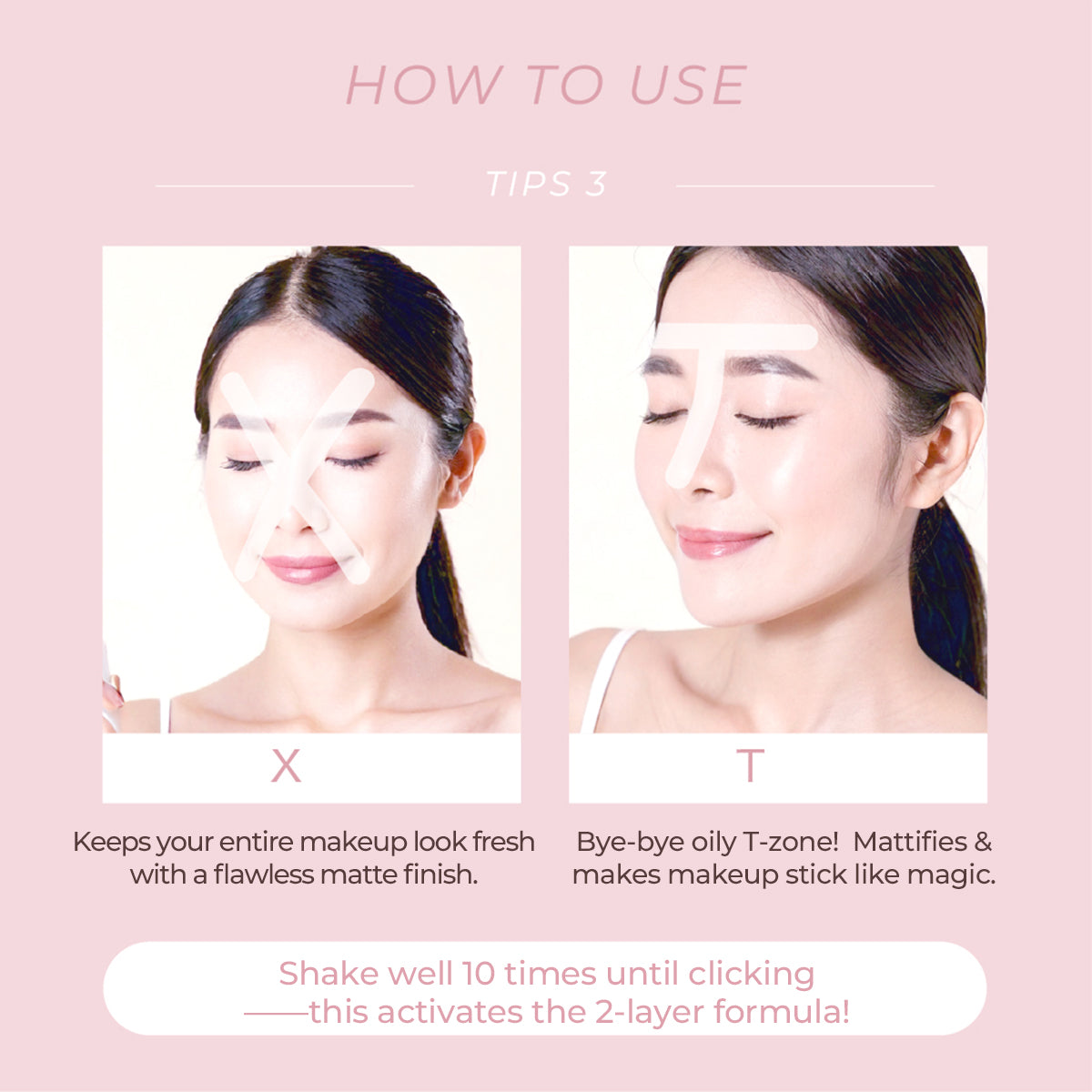 * A powder-infused mist to prevent shine and control excess sebum without stickiness