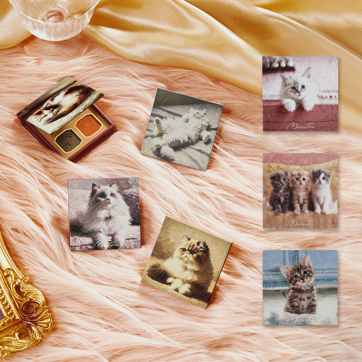 Fine pearls and sparkling glitter create sophisticated eyes that shine like a cat's.