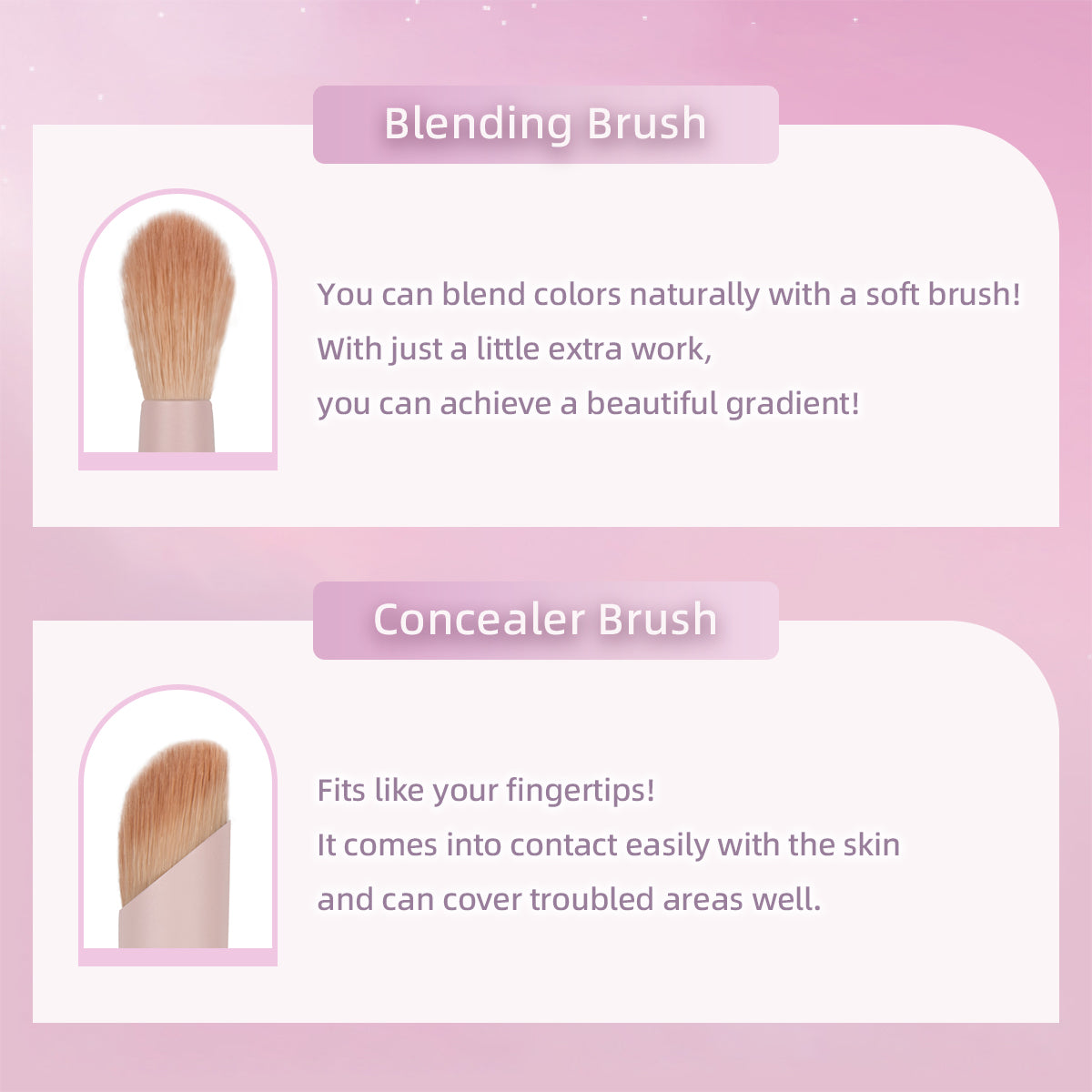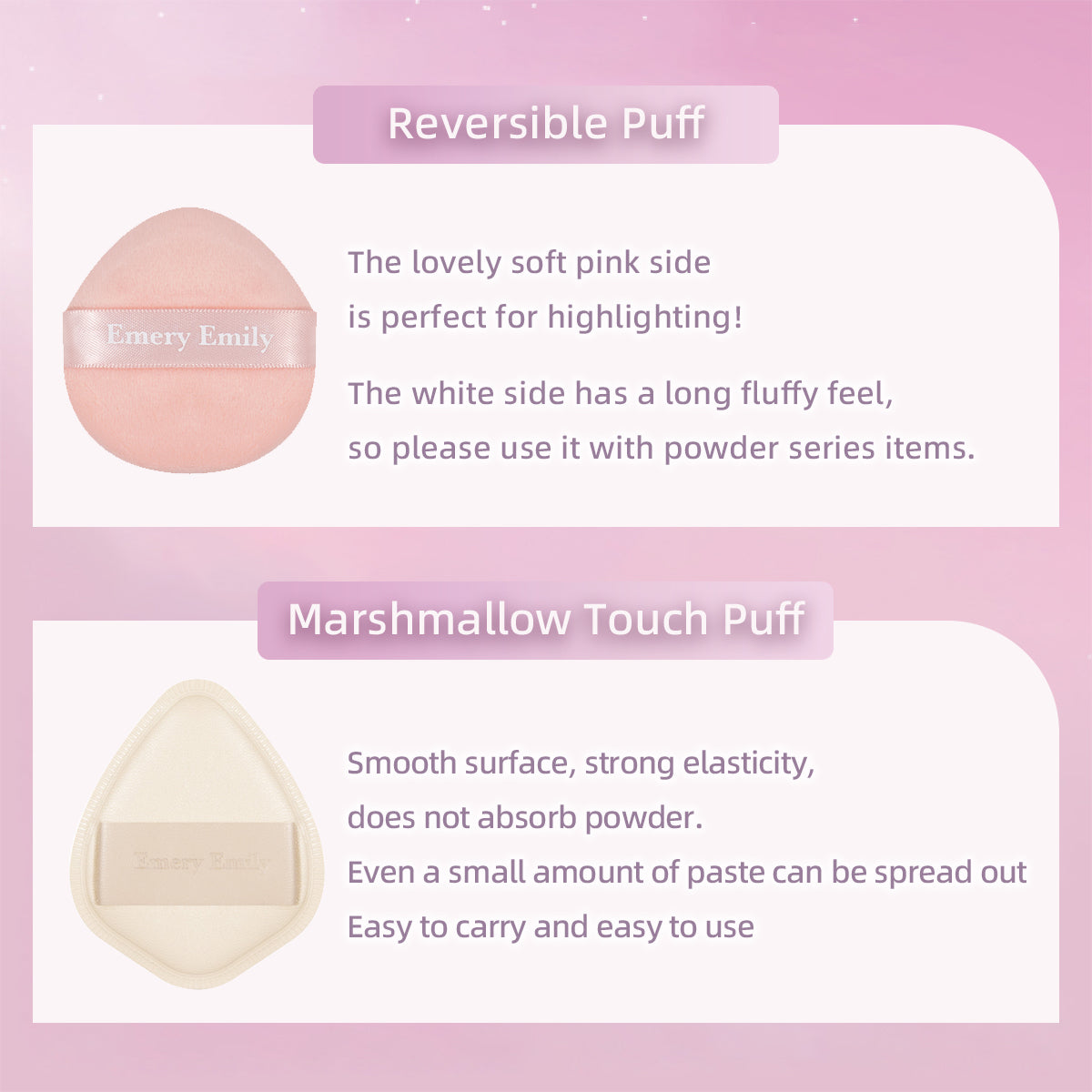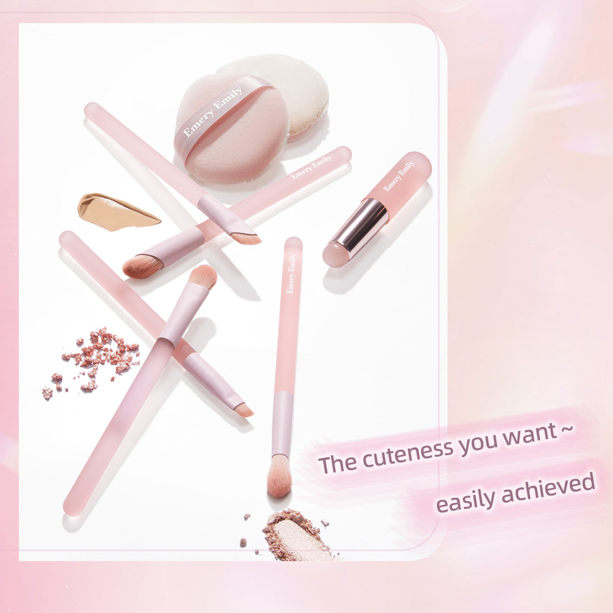 All series:Eyebrow Brush / Eyeliner Brush / Blending Brush / Eyeshadow Brush / Concealer Brush / Silicone Lip Brush / Reversible Puff / Marshmallow Touch Puff